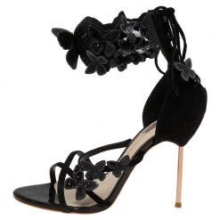 Sophia Webster Black Suede And Patent Floral Embroidered Ankle Strap Sandals Size 39 For Women