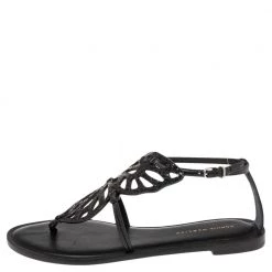 Sophia Webster Black Leather Bibi Butterfly Ballet Flats Size 37 For Women
