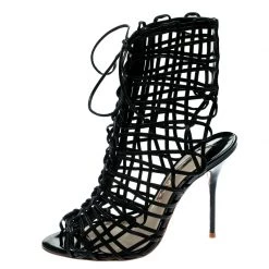 Sophia Webster Black Patent Leather And Dina Gem Embellished PVC Espadrille Wedges Size 42 For Women