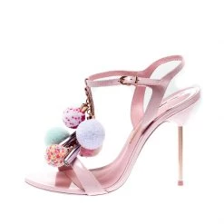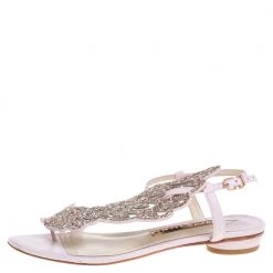 Sophia Webster Pink Leather Crystal Embellished Evangeline Open Toe Sandals Size 38 For Women