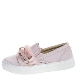 Sophia Webster Pink Leather And Faux Fur Bella Embellished Bow Slip On Sneakers Size 41 For Women