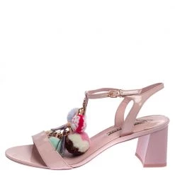 Sophia Webster Pink Patent Leather Juno Pom Pom Embellished Ankle Strap Sandals Size 41 For Women