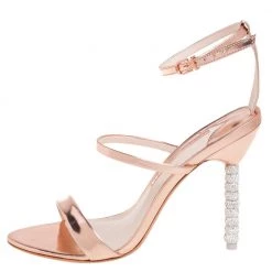 Sophia Webster Rose Gold Leather Rosalind Crystal Heel Ankle Strap Sandals Size 39 For Women