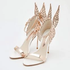 Sophia Webster Rose Gold Leather Rosalind Crystal Heel Ankle Strap Sandals Size 38 For Women