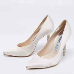 Sophia Webster White Leather Coco Crystal Embellished Heel Pointed Toe Pumps Size 36 For Women