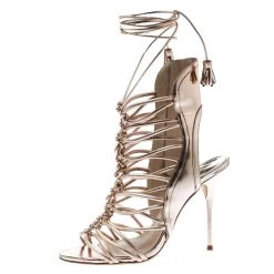 Sophia Webster Metallic Rose Gold Leather Chiara Butterfly Ankle Strap Sandals Size 40 For Women