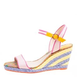 Sophia Webster Multicolor Canvas Lucita Mid Espadrille Wedge Ankle Strap Sandals Size 40 For Women