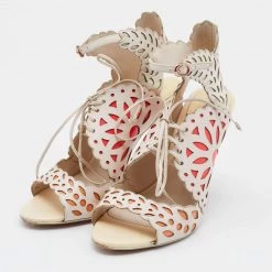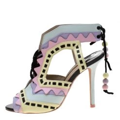 Sophia Webster Multicolor Fabric Suede Leather Flamingo Frill Ankle Wrap Sandals Size 40 For Women