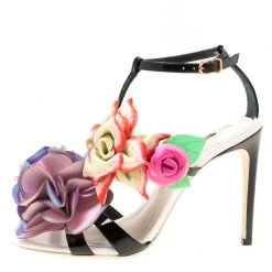 Sophia Webster Multicolor Patent Leather Flamingo Peep Toe T Strap Sandals Size 38 For Women