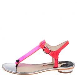 Sophia Webster Pink Patent Leather Layla Pom Pom Embellished T-Strap Sandals Size 38.5 For Women