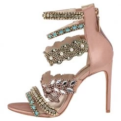 Sophia Webster Pink Satin Amanda Crystal Embellished Platform Ankle Strap Sandals Size 40 For Women