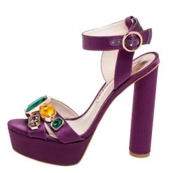 Sophia Webster Purple Satin Amanda Crystal Embellished Cross Strap Sandals Size 41 For Women
