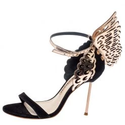 Sophia Webster Black/Rose Gold Suede And Leather Evangeline Open Toe Sandals Size 39 For Women