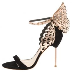 Sophia Webster Black/Rose Gold Suede And Leather Evangeline Ankle Strap Sandals Size 37.5 For Women