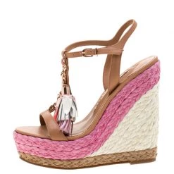 Sophia Webster Brown Leather Lucita Tassel Detail Espadrille Wedge Sandals Size 35.5 For Women