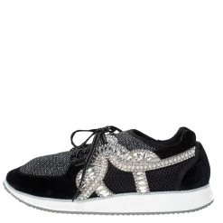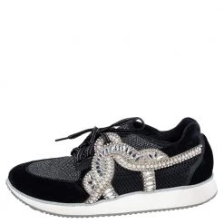Sophia Webster Black Velvet/Mesh And Embellishment Royalty Low Top Sneakers Size 41 For Women