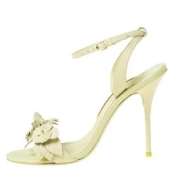 Sophia Webster Neon Green Leather Lilico Floral Embellished Ankle Wrap Sandals Size 36.5 For Women