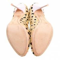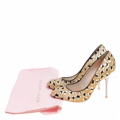 Much loved and an absolute favourite, Sophia Webster continues to charm us with her gorgeous designs and these pumps are no exception. The beige pumps are crafted from calf hair and feature an animal printed pattern all over them. They flaunt round toes, comfortable leather lined insoles and 10.5 cm stiletto heels. Pair them with high waisted trousers or asymmetrical skirts for your special occassions.