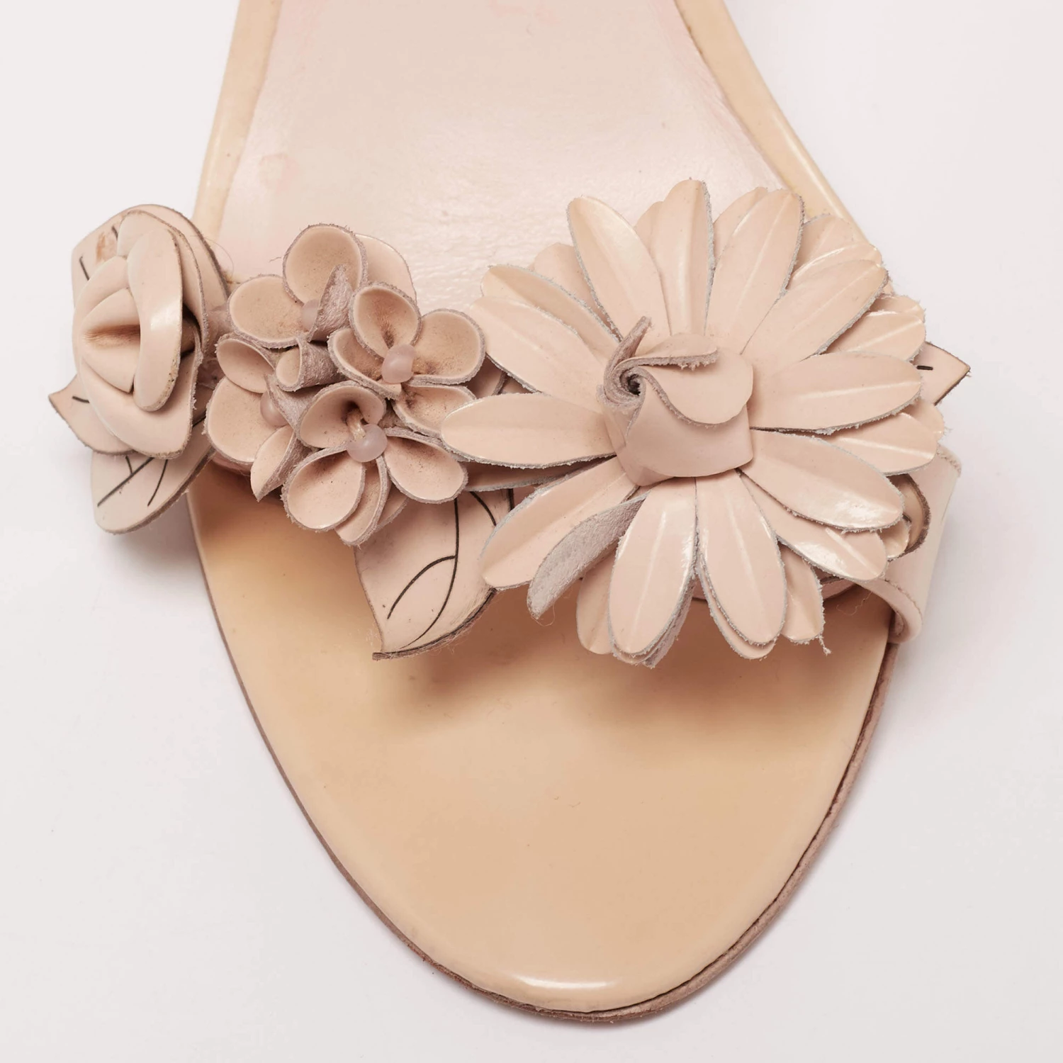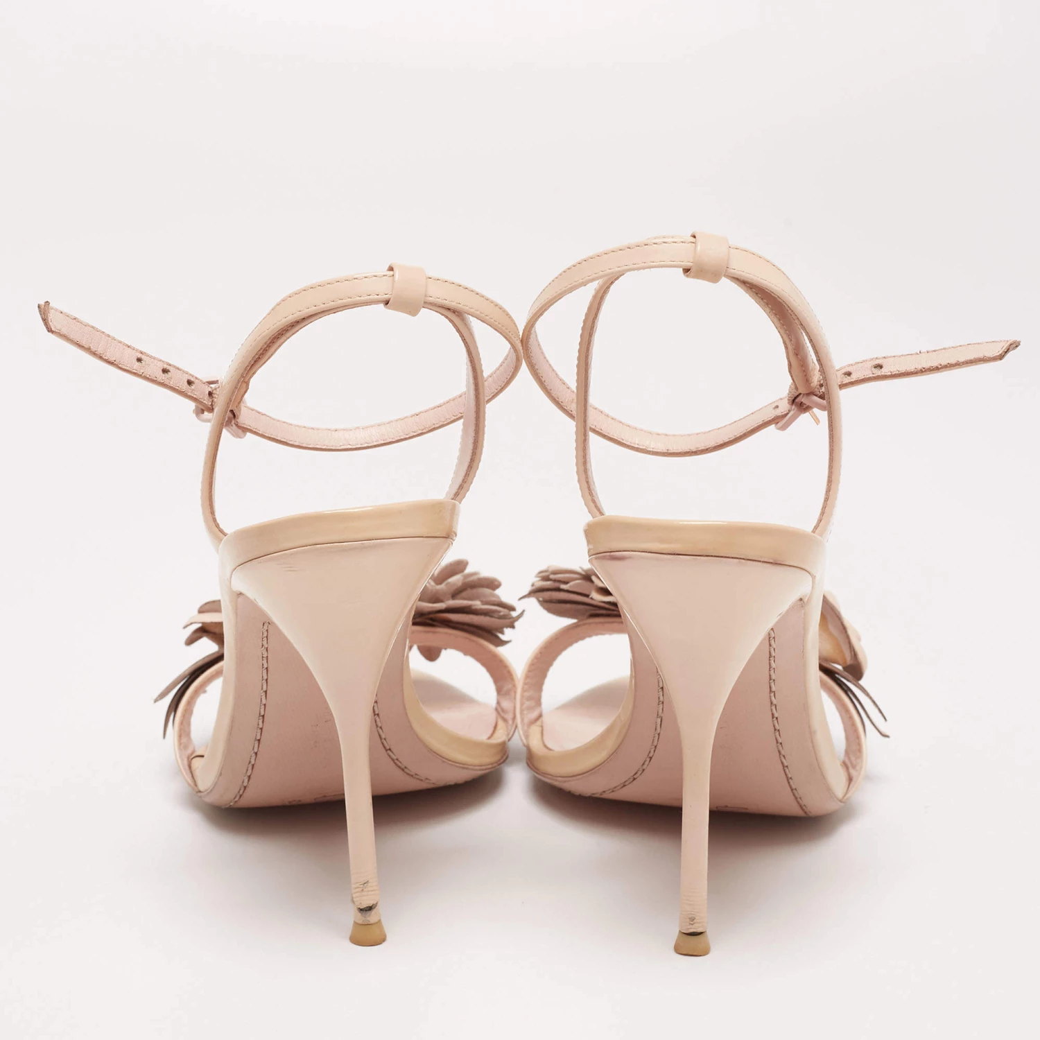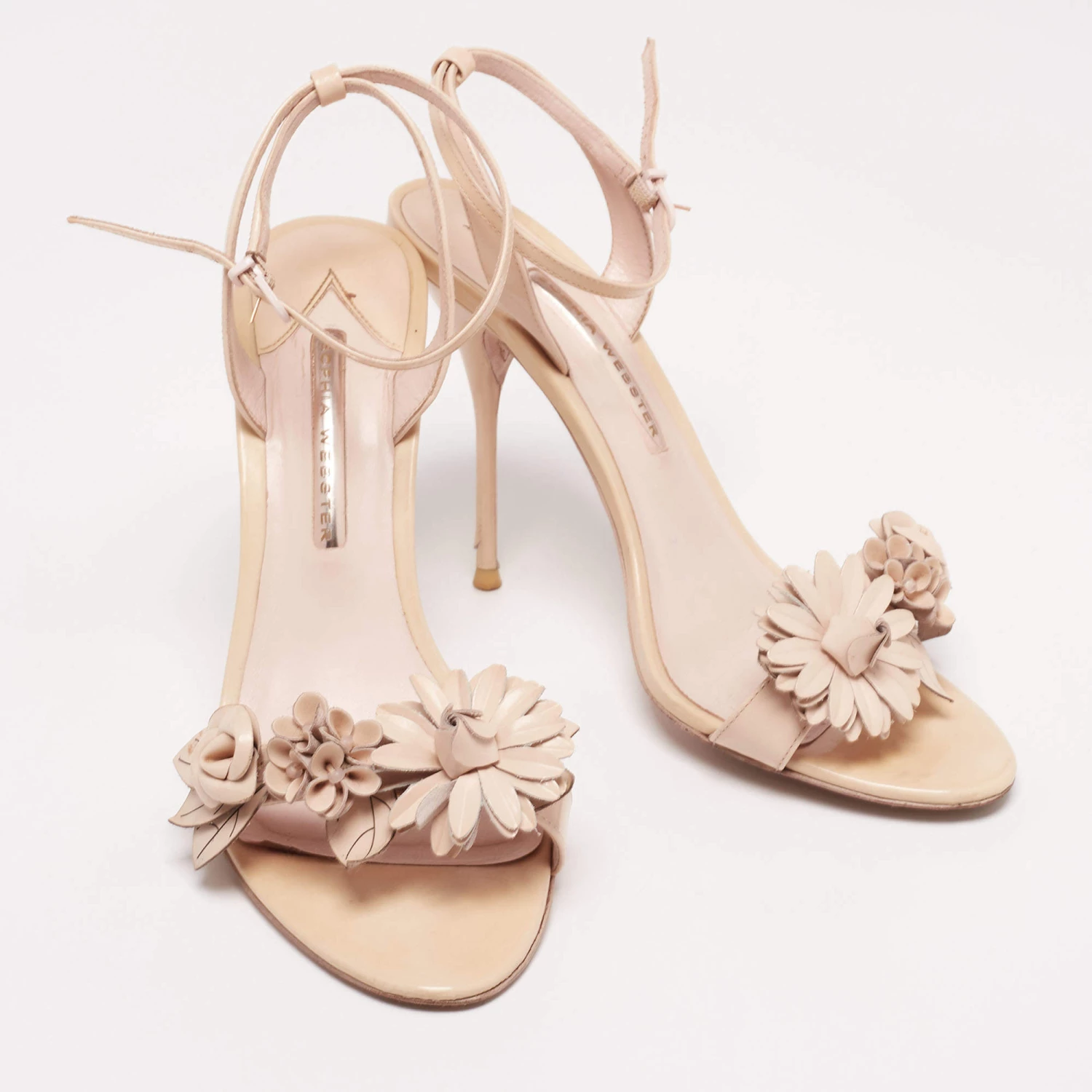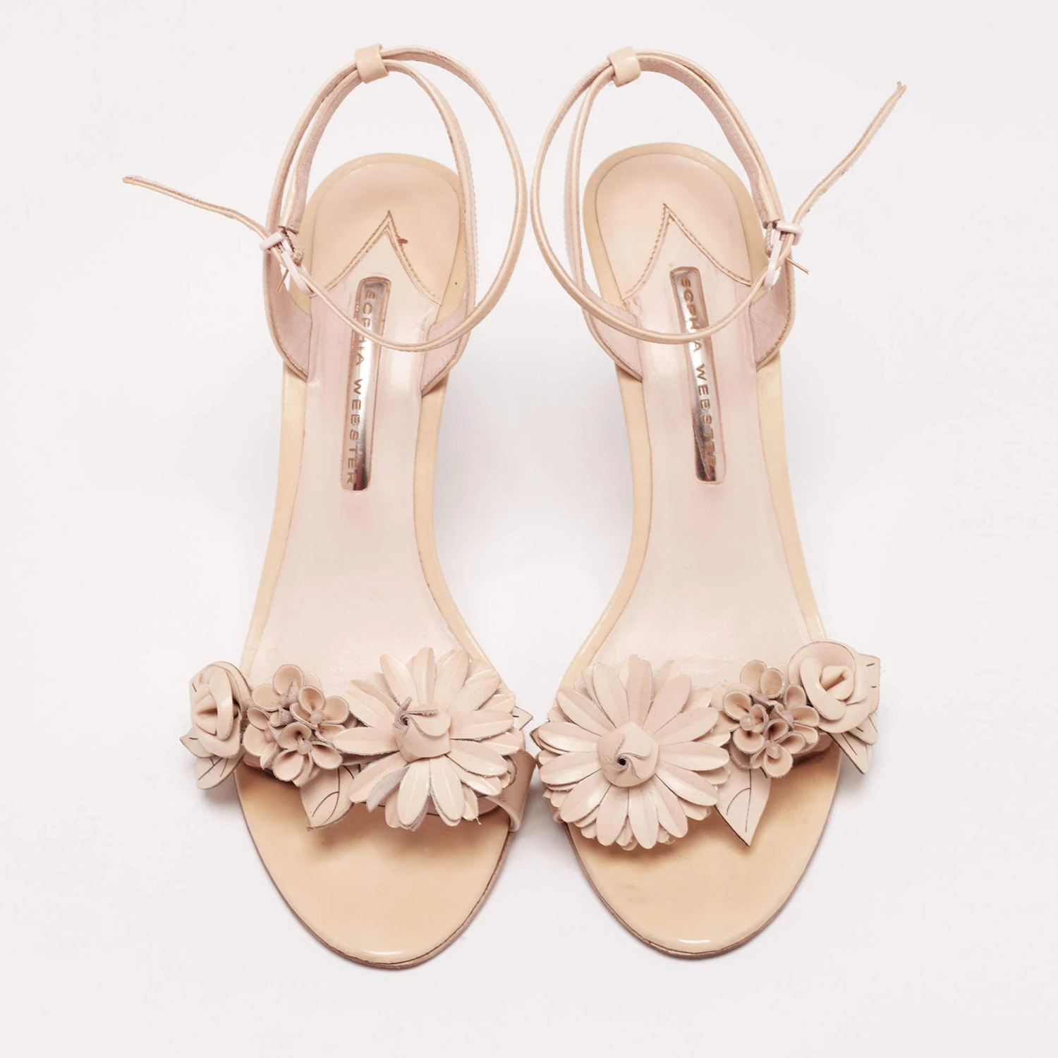 These sandals from Sophia Webster are all about class and elegance! They are made from beige leather on the exterior. They feature open toes, floral appliques, and slim heels. They are provided with an ankle strap. Flaunt your chic style with these gorgeous sandals.