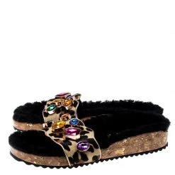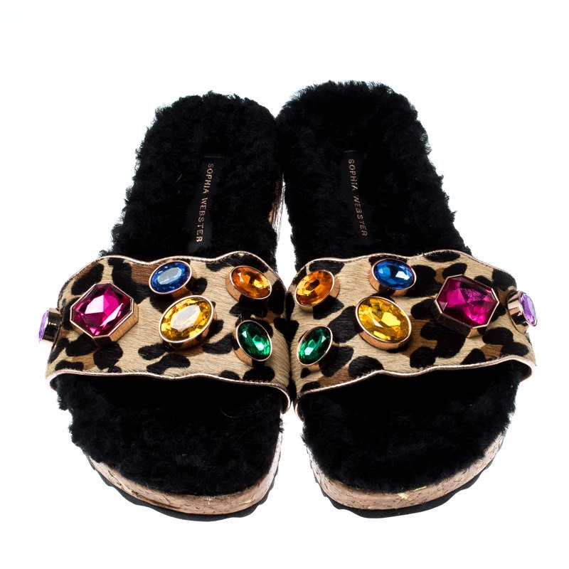 Wear these slides on days when you cannot choose between fashion and comfort for they bring both. They are from Sophia Webster, designed with fur insoles and calf hair straps embellished with crystals.