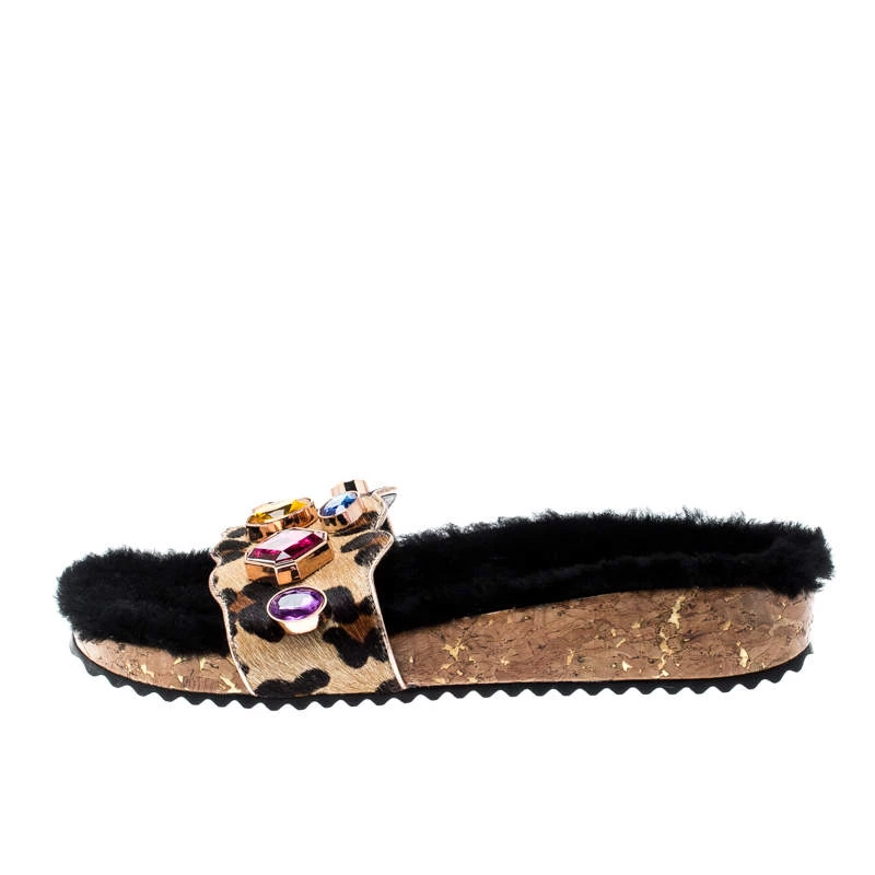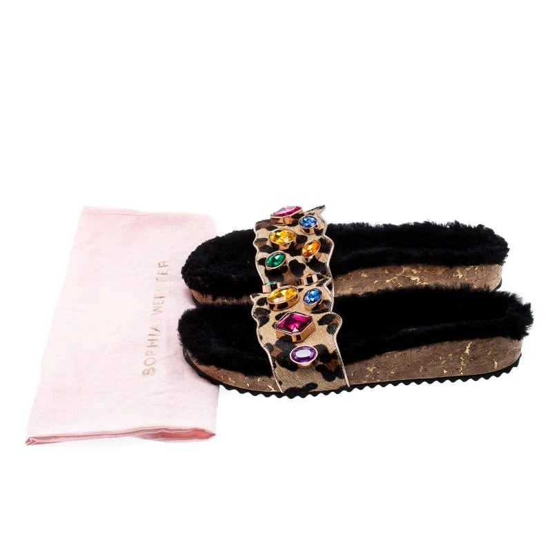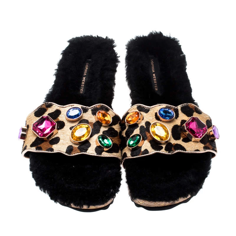 Wear these slides on days when you cannot choose between fashion and comfort for they bring both. They are from Sophia Webster, designed with fur insoles and calf hair straps embellished with crystals.