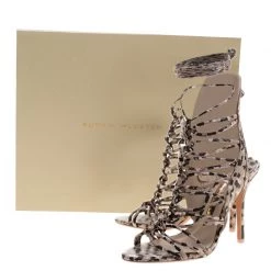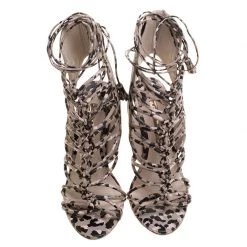 These sandals from Sophia Webster look absolutely breathtaking! The sandals are crafted from leather and designed with leopard prints in a strappy layout bound by side zippers and tie-ups around the ankles. Balanced on 10.5 cm heels, this lovely pair will have everyone in admiration.