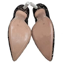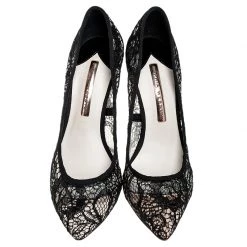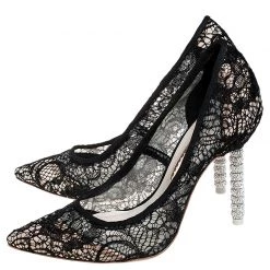 Pick this gorgeous pair of pumps and flaunt your style. This pair from the house of Sophia Webster is made from black lace and feature pointed toes, leather insoles and 7 cm heels decorated with crystal rings. Have a striking day out in these!