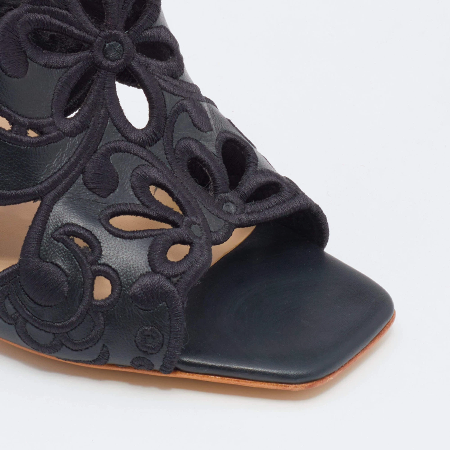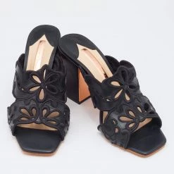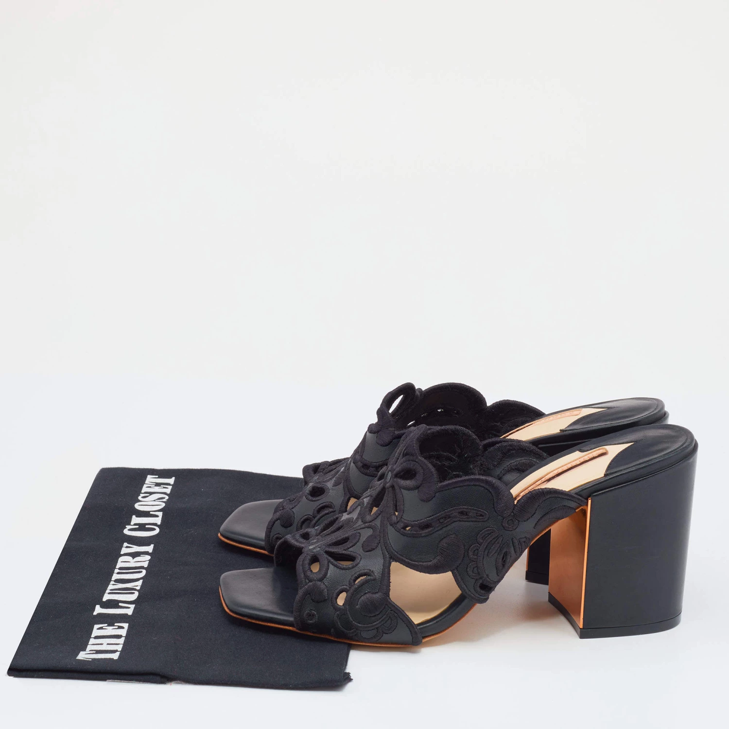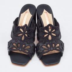 These sandals from Sophia Webster will add a luxurious edge to your ensemble. Crafted from black leather and lace, these sandals flaunt laser cut-out detailing, open-toes, and block heels. Finished with bronze-tone fittings, these sandals appear glamorous! Bring these sandals home and update your collection!