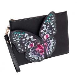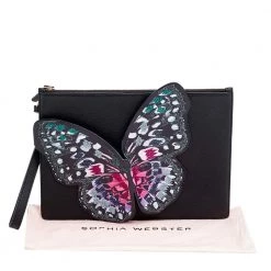 Sophia Webster brings you yet another gorgeous accessory with this clutch. It has been crafted from black leather and reveals a well-sized interior with ample. The lovely creation is complete with an exaggerated butterfly applique on the front.