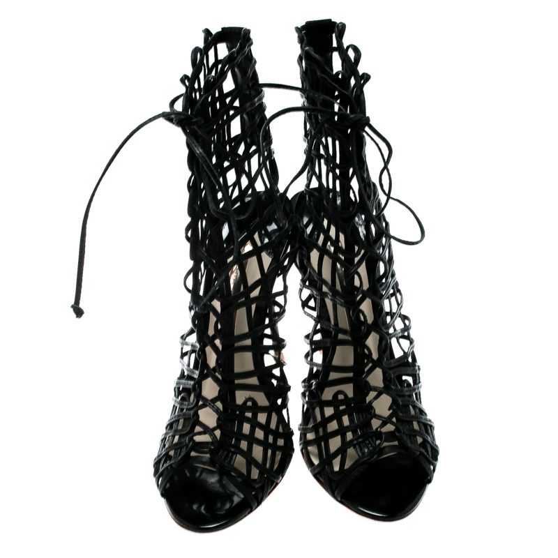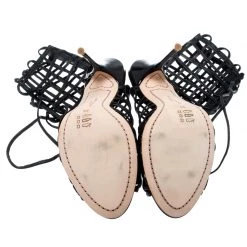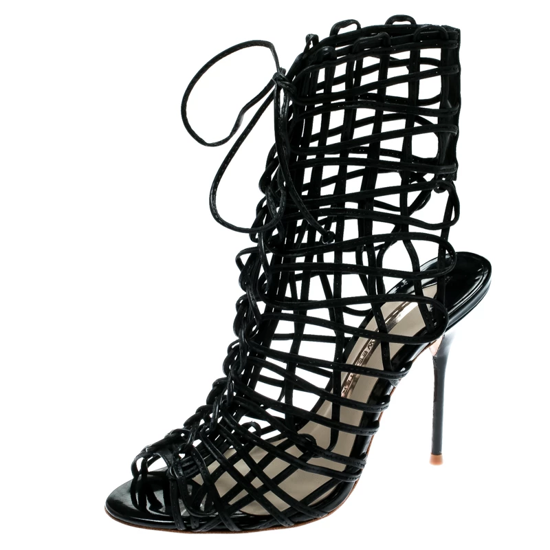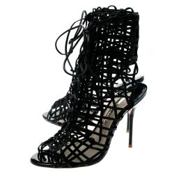 You’ll love walking in these Delphine sandals from Sophia Webster that are perfect for your fashionable outings. These black sandals are crafted from leather and feature a peep-toe silhouette. They flaunt a cage design on the vamps and come equipped with tie-ups, comfortable insoles, and 11 cm stiletto heels. Pair them with a knee-length dress and a sling bag to make heads turn.
