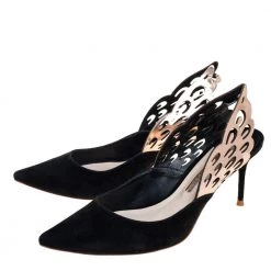 Sophia Webster never fails to amaze and charm us! These stunning Angelo sandals have been designed creatively with wing-shaped slingbacks that beautifully extend out. They come crafted from suede and styled with pointed toes. Equipped with comfortable leather-lined insoles, they are elevated on 7. cm heels and will add a whole lot of style to your wardrobe.