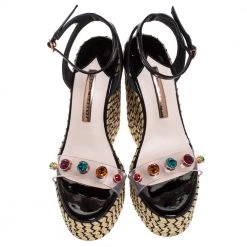 You’ll love walking in these sandals from Sophia Webster that are perfect for your fashionable outings. These black sandals are crafted from leather and feature stud-detailed PVC vamp straps and buckled ankle straps. They come equipped with comfortable leather-lined insoles and 13.5 cm espadrille wedge heels. Pair them with a knee-length dress and a sling bag to make heads turn.