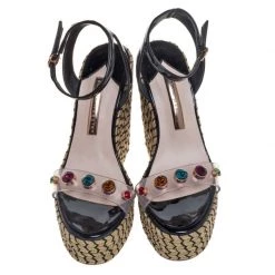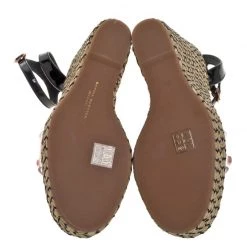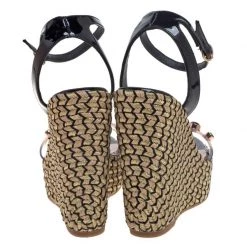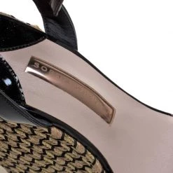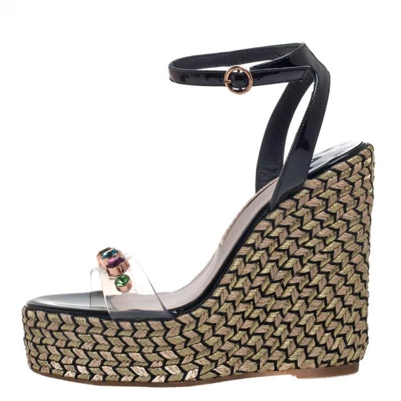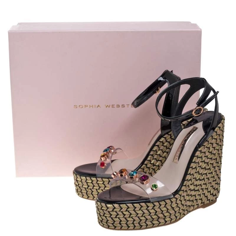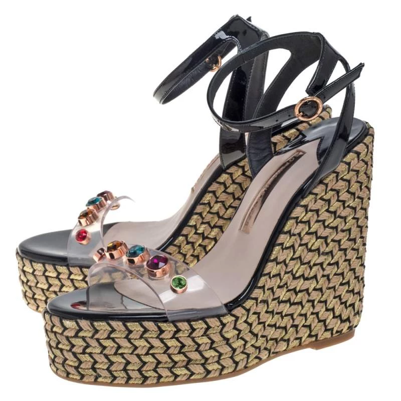 Stay comfortable on your next outing in these Sophia Webster espadrille sandals. They are crafted from black patent leather and PVC and styled in an open-toe silhouette with crystal-studded vamp straps. They flaunt ankle straps with buckle fastenings and come equipped with leather-lined insoles and 13.5 cm platform wedge heels.