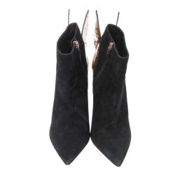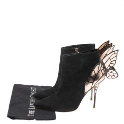 When it comes to dreamy, modern designs, Sophia Webster tops our list! We are charmed yet again with these black Chiara Wing ankle boots that are crafted from suede into a pointed toe silhouette. They flaunt side zippers and the heel counters are detailed with rose gold-tone wings that extend out beautifully making the pair look amazing. They are set on 11.5 cm heels.