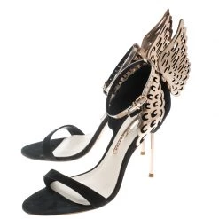 Creativity is a gift, and it is evidently abundant with Sophia Webster. The brand has a flair for incorporating marvelling ideas with shoemaking, and maybe that’s why their designs are so coveted. These “Evangeline” sandals are simply unbelievable. They flaunt an exterior made from suede and leather and artistically designed with a single strap and breathtaking laser-cut wings emerging from the counters above the 12 cm heels.
