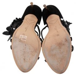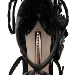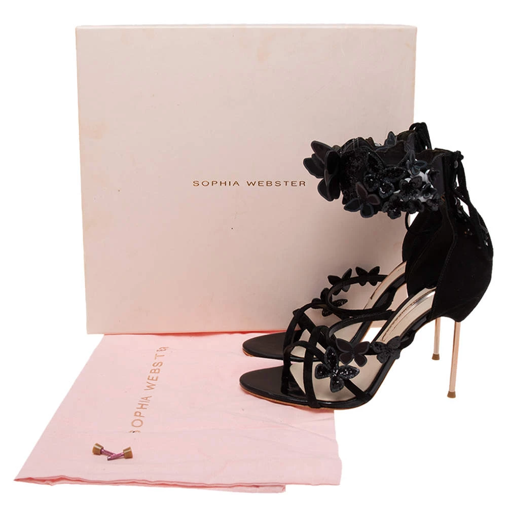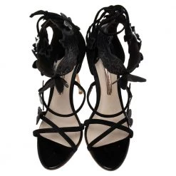 Flaunt versatility as you walk in these sandals from Sophia Webster. They are crafted using black satin, which is elevated with floral embroidered appliques. They showcase open toes, slim heels, and an ankle strap. Make a style statement as you wear these sandals!