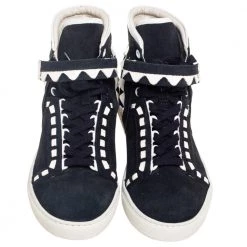 Keep your look edgy and cool with these Sophia Webster Riko sneakers. Designed in a high-top silhouette, this pair features a suede and patent leather body and is rounded off with lace-ups. They are set on a thick rubber sole that not only adds to the look but also ensures great comfort and traction. Style with your favorite cropped jeans to flaunt the style.