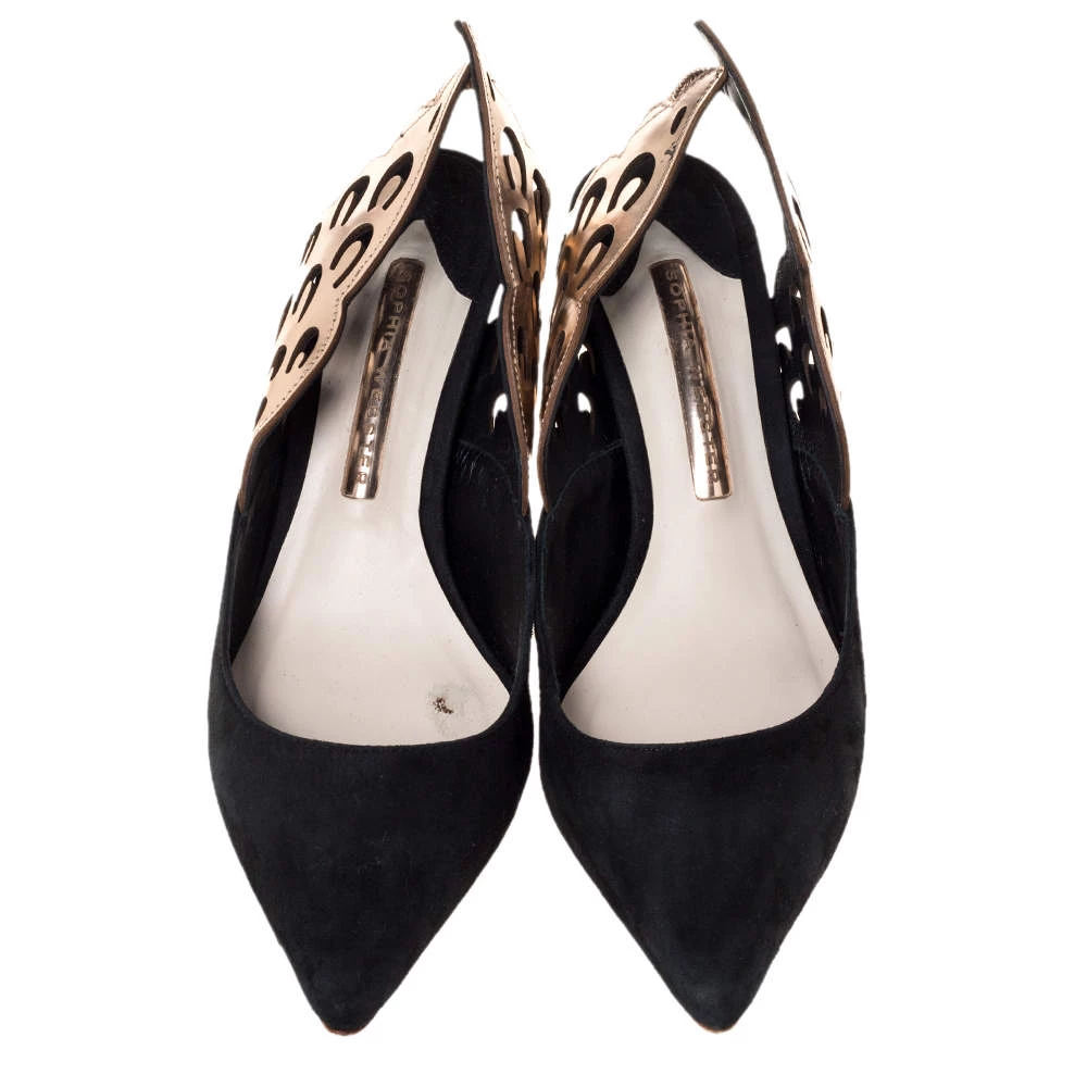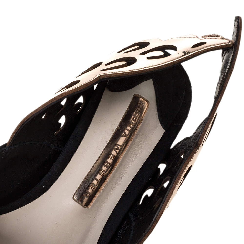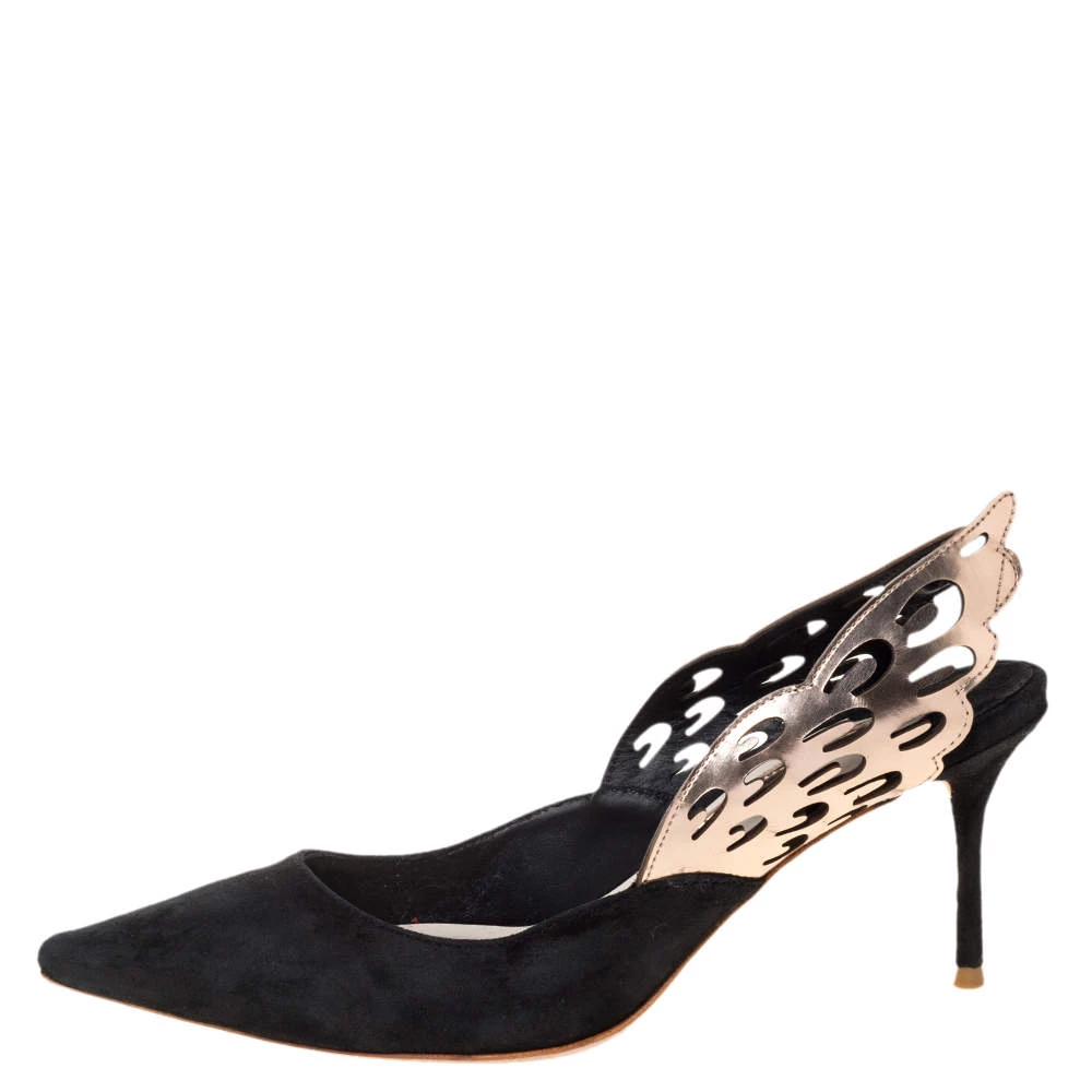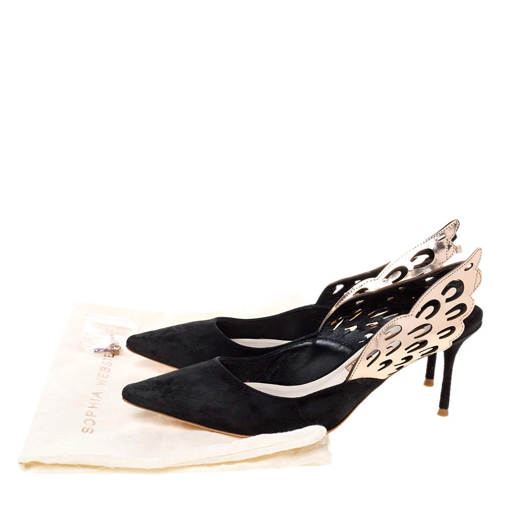 Sophia Webster never fails to amaze and charm us! These stunning Angelo sandals have been designed creatively with wing-shaped slingbacks that beautifully extend out. They come crafted from suede and styled with pointed toes. Equipped with comfortable leather-lined insoles, they are elevated on 7 cm heels and will add a whole lot of style to your wardrobe.