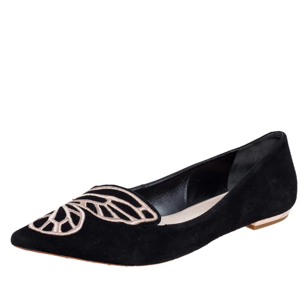 Known for her dreamy designs, Sophia Webster is a name known well with shoe lovers. These Bibi flats are crafted from suede and designed with pointed toes and beautiful butterfly detailing on the vamps. The flats are leather-lined on the insoles to ensure long-lasting comfort and durability.