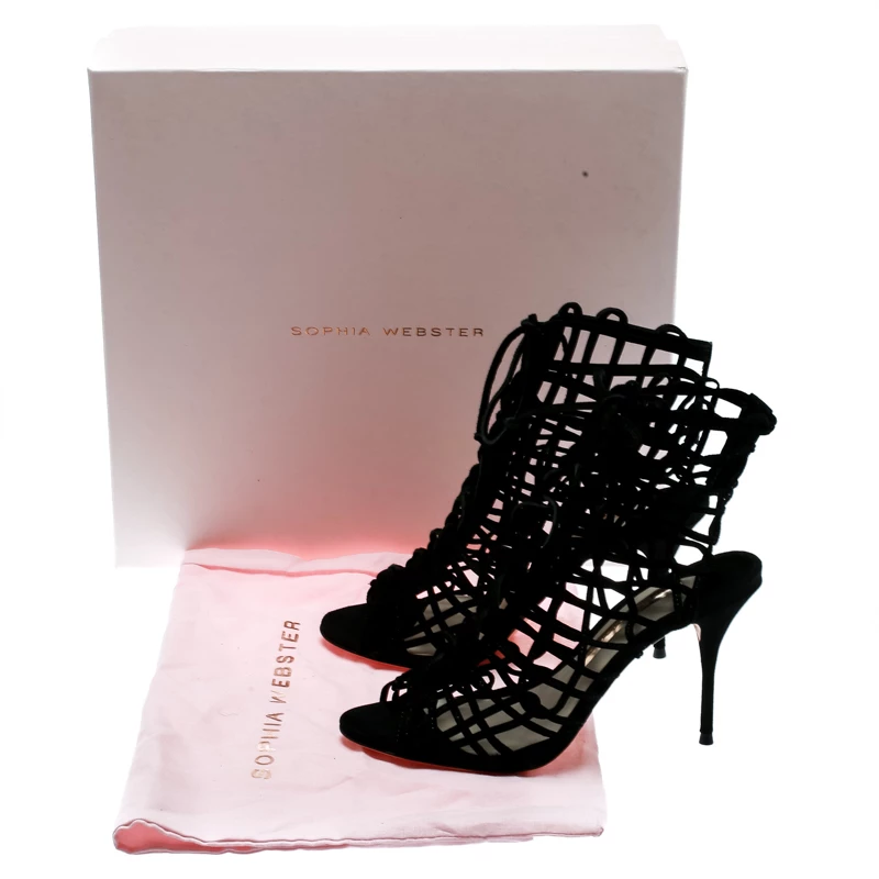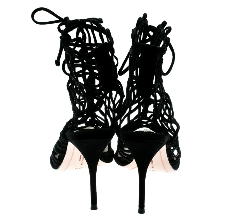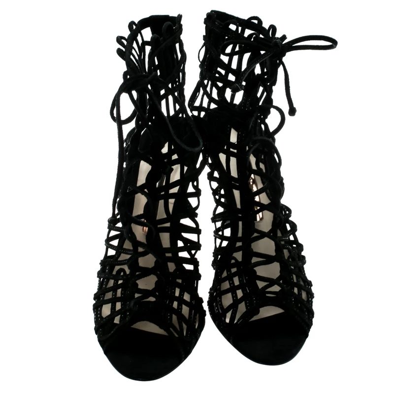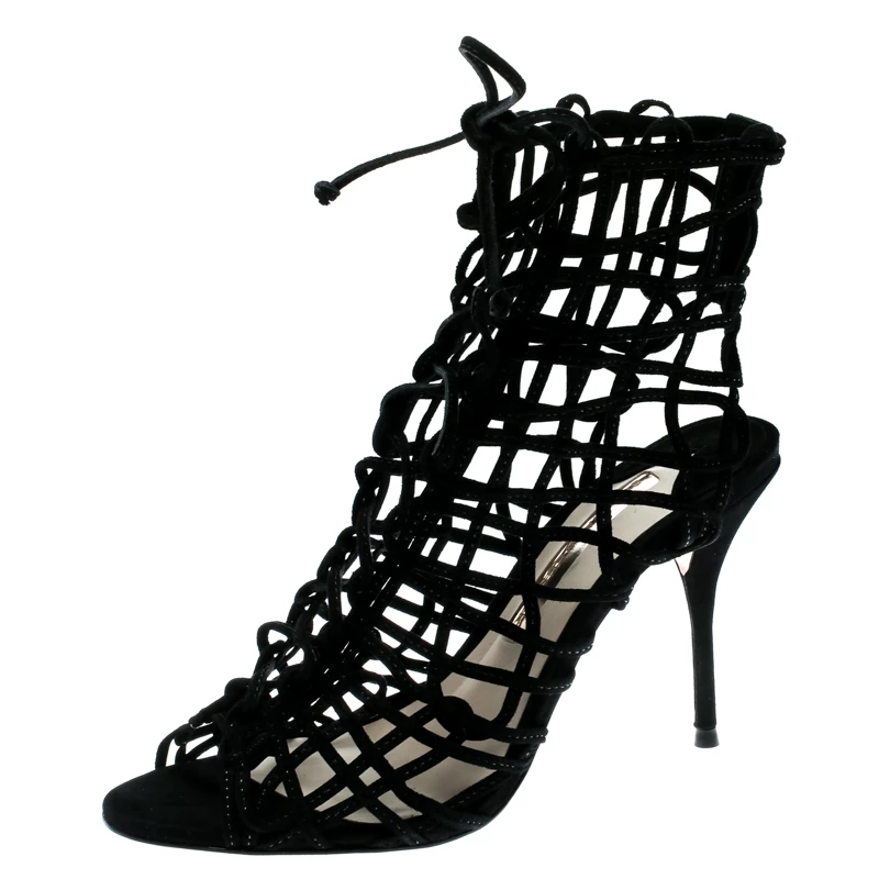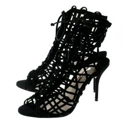 You’ll love walking in these Delphine sandals from Sophia Webster that are perfect for your fashionable outings. These black sandals are crafted from suede and feature a peep-toe silhouette. They flaunt a cage design on the vamps and come equipped with tie-ups, comfortable insoles, and 9.5 cm stiletto heels. Pair them with a knee-length dress and a sling bag to make heads turn.