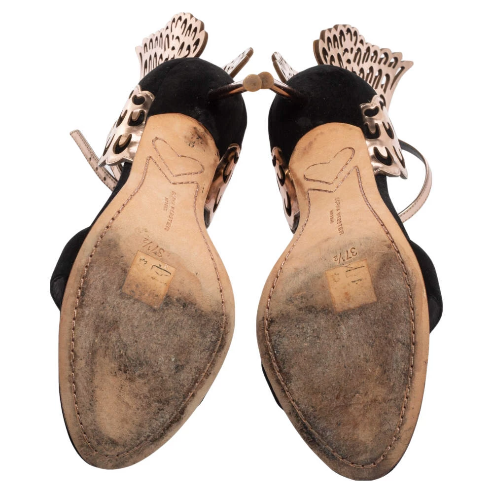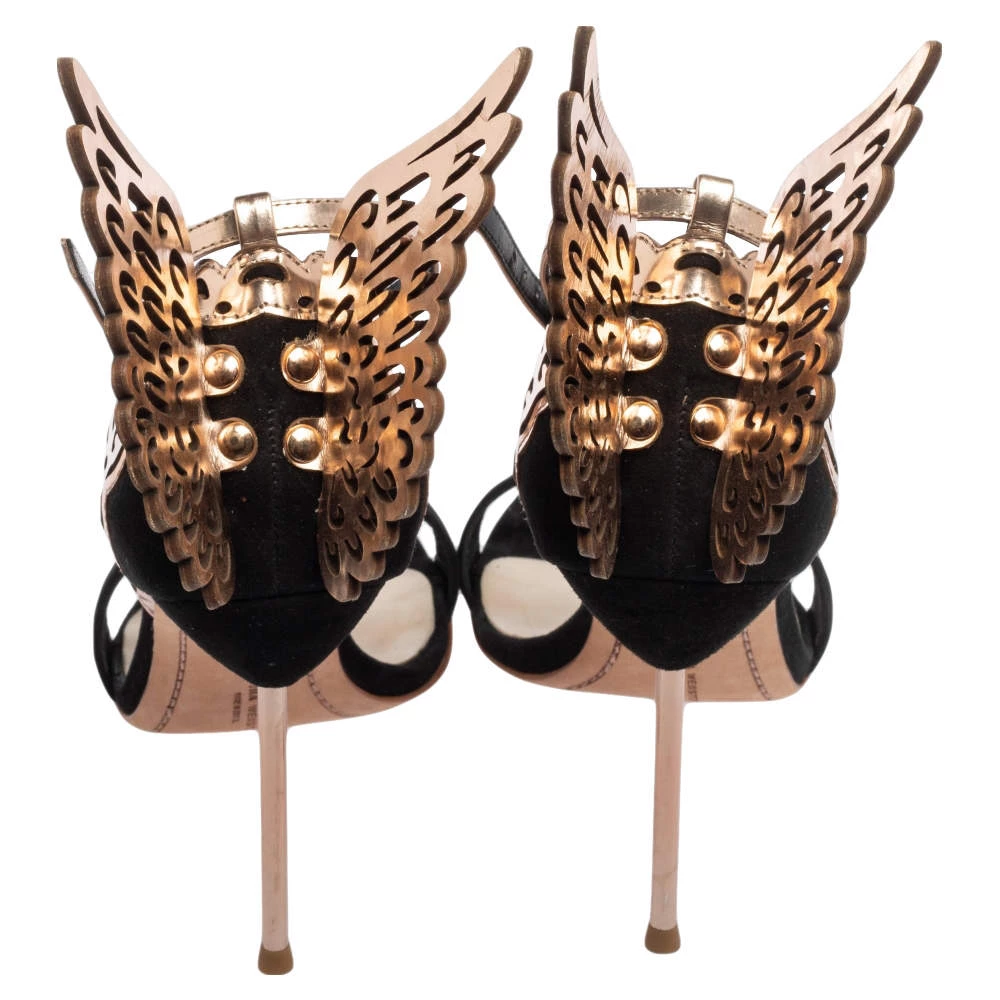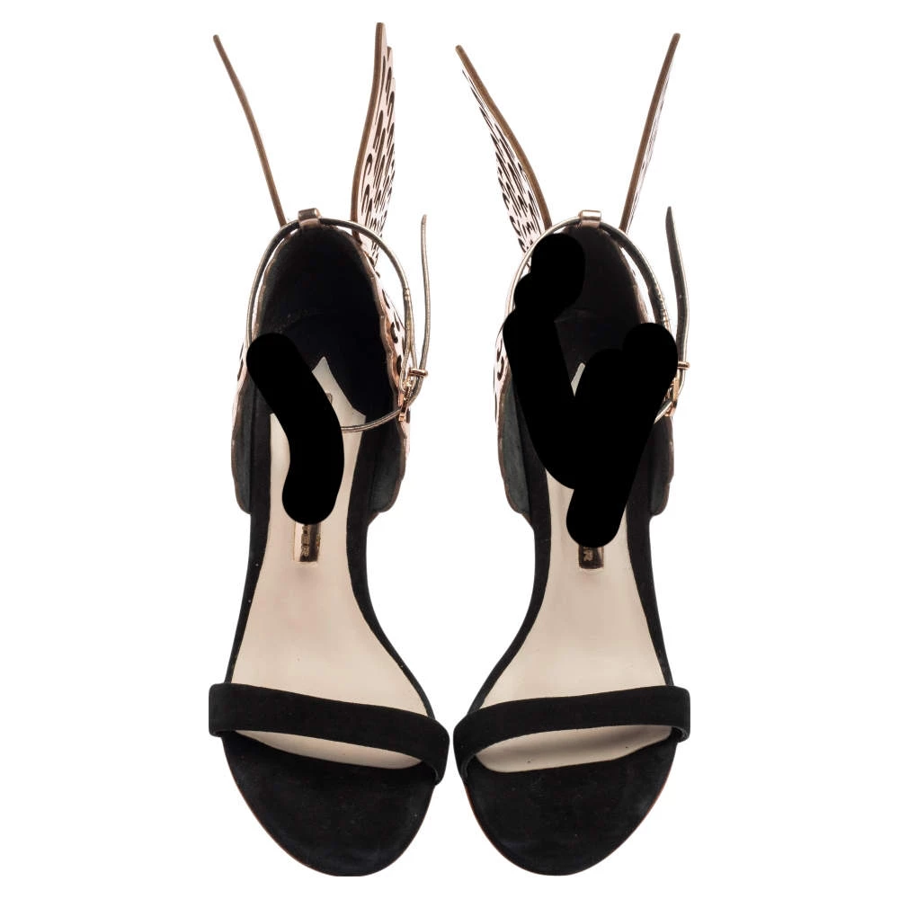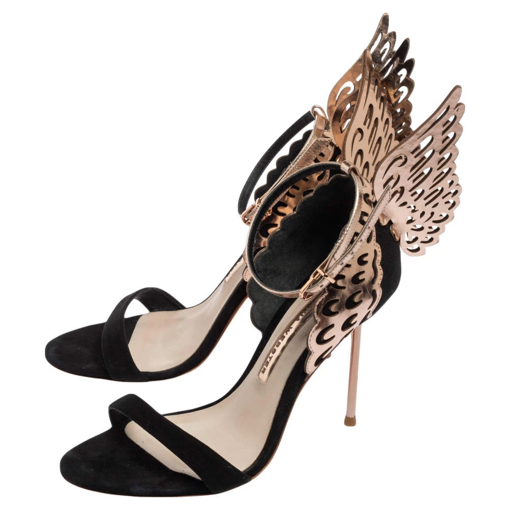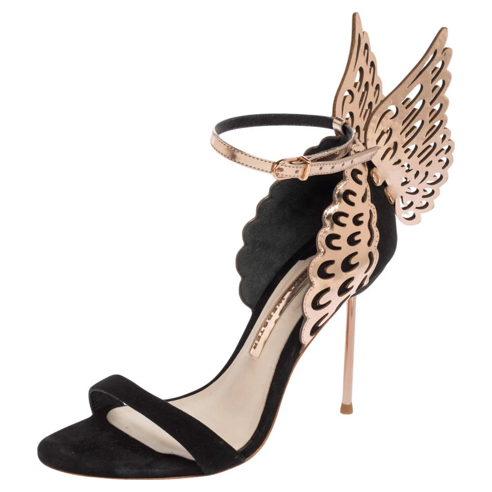 Sophia Webster has a flair for incorporating marveling ideas into shoemaking — one reason why her designs are so coveted. These “Evangeline” sandals are simply unbelievable. They flaunt an exterior made from suede and artistically designed with a single strap and breathtaking laser-cut wings emerging from the counters above the heels.