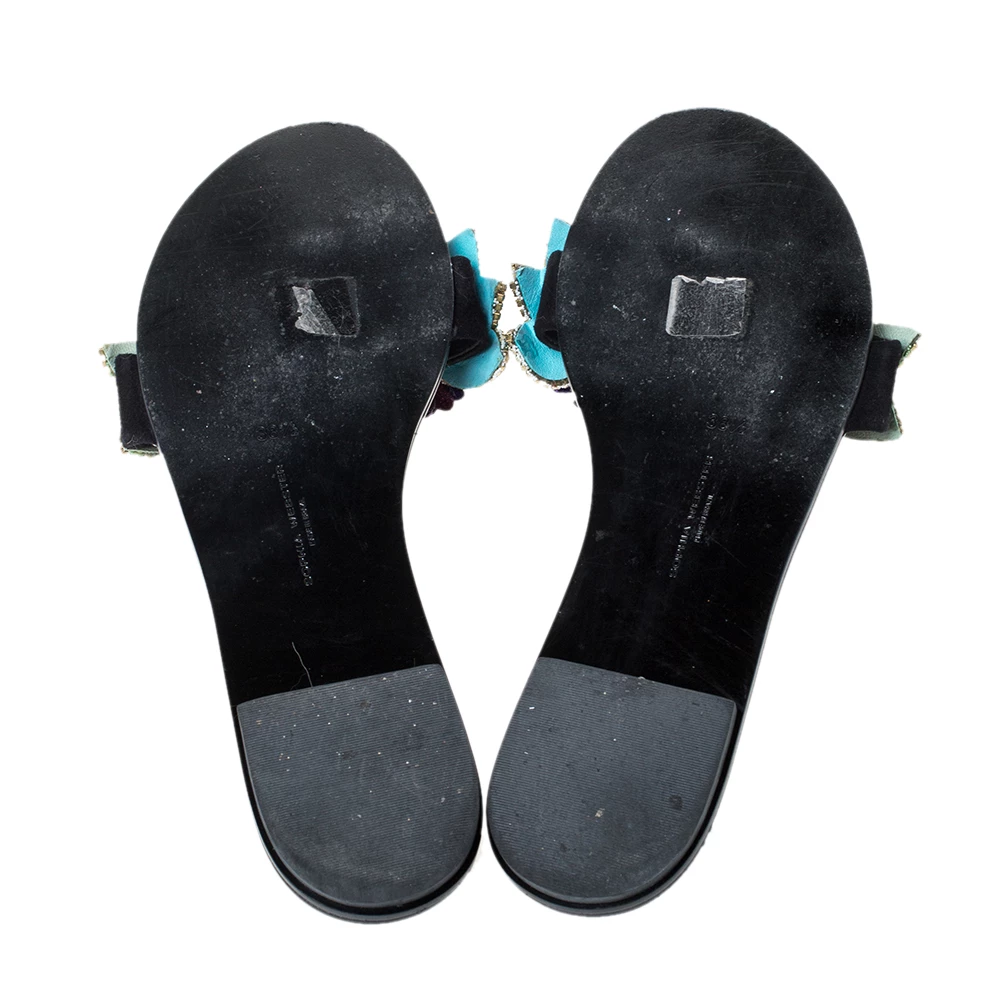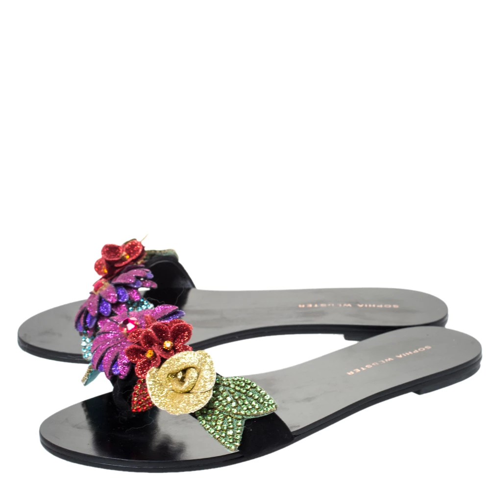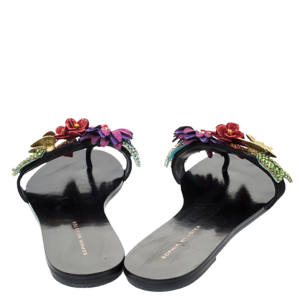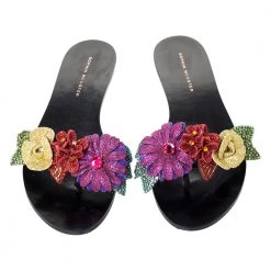 Nothing like a fabulous pair of slides to brighten up your outfit! These Sophia Webster slides are suede-made and they carry a black glitter shade. But what makes these slides so desirable are the beautiful flowers embellished with crystals on the uppers. This is definitely one pair that speaks beauty in a simple way.