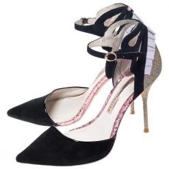 Creativity is a gift and it is evidently abundant with Sophia Webster. The brand has a flair for incorporating marveling ideas with shoemaking and maybe that’s why their designs are so coveted. These pumps are simply unbelievable. They flaunt an exterior made from leather, suede and glitter and artistically designed with cutouts and ruffled trims on the counters. The pumps are made whole with pointed toes, buckled ankle straps, and 10.5 cm heels.