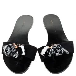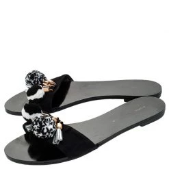 For days of ease and style, Sophia Webster created these flat slides. They have suede uppers embroidered with pompoms and the insoles are lined with leather for comfort. The slides will come in handy with many of your outfits.