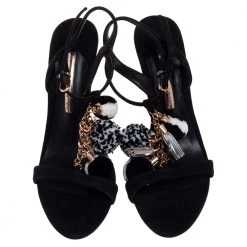 Sophis Webster is the go-to label for playful and stylish sandals like these ones. Crafted meticulously from quality suede in a classic black shade, the minimal design is accentuated by pom poms and tassels. Style them with your favorite LBD for a chic appeal.