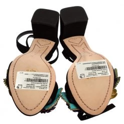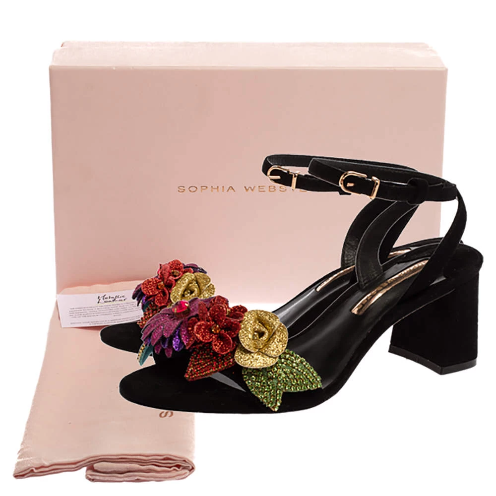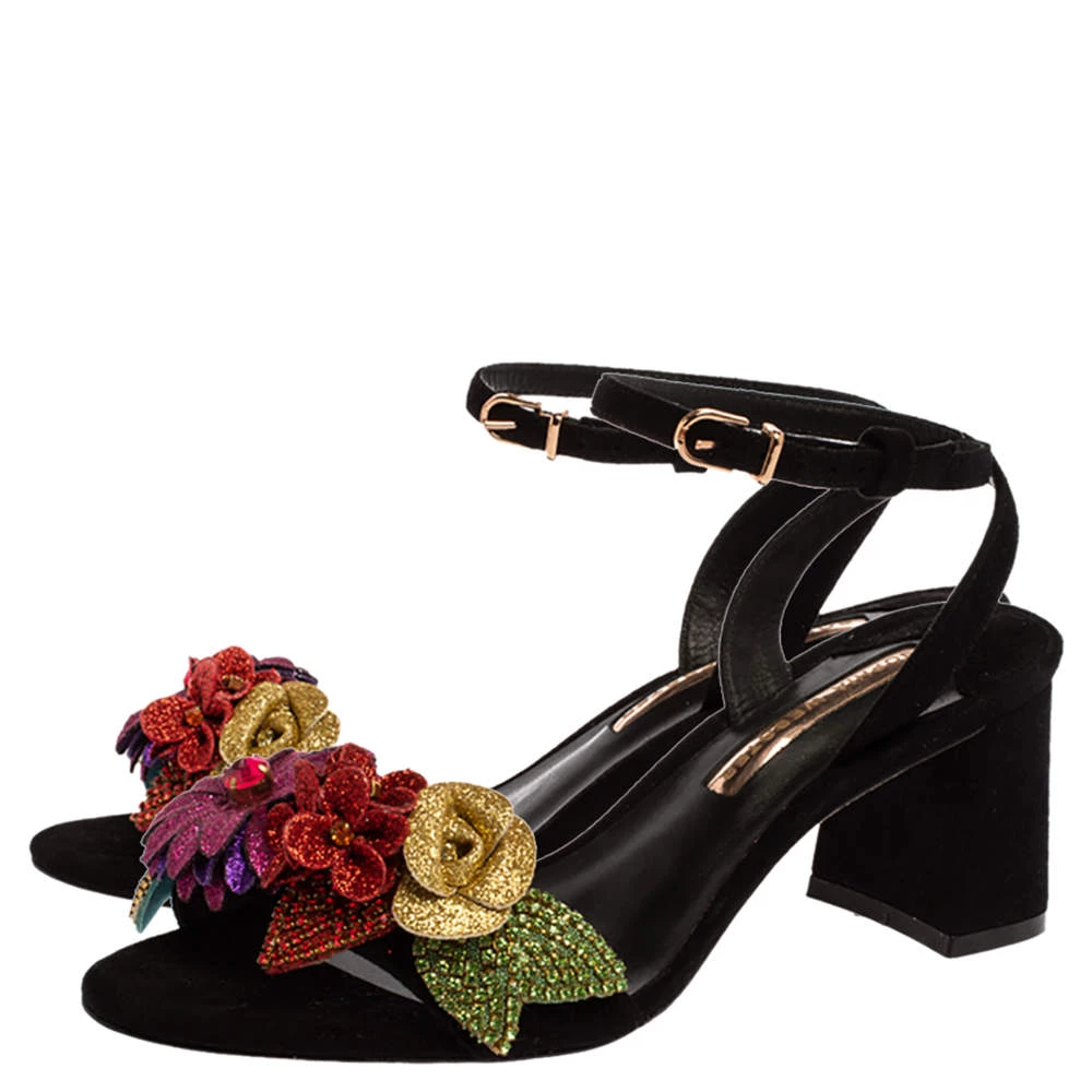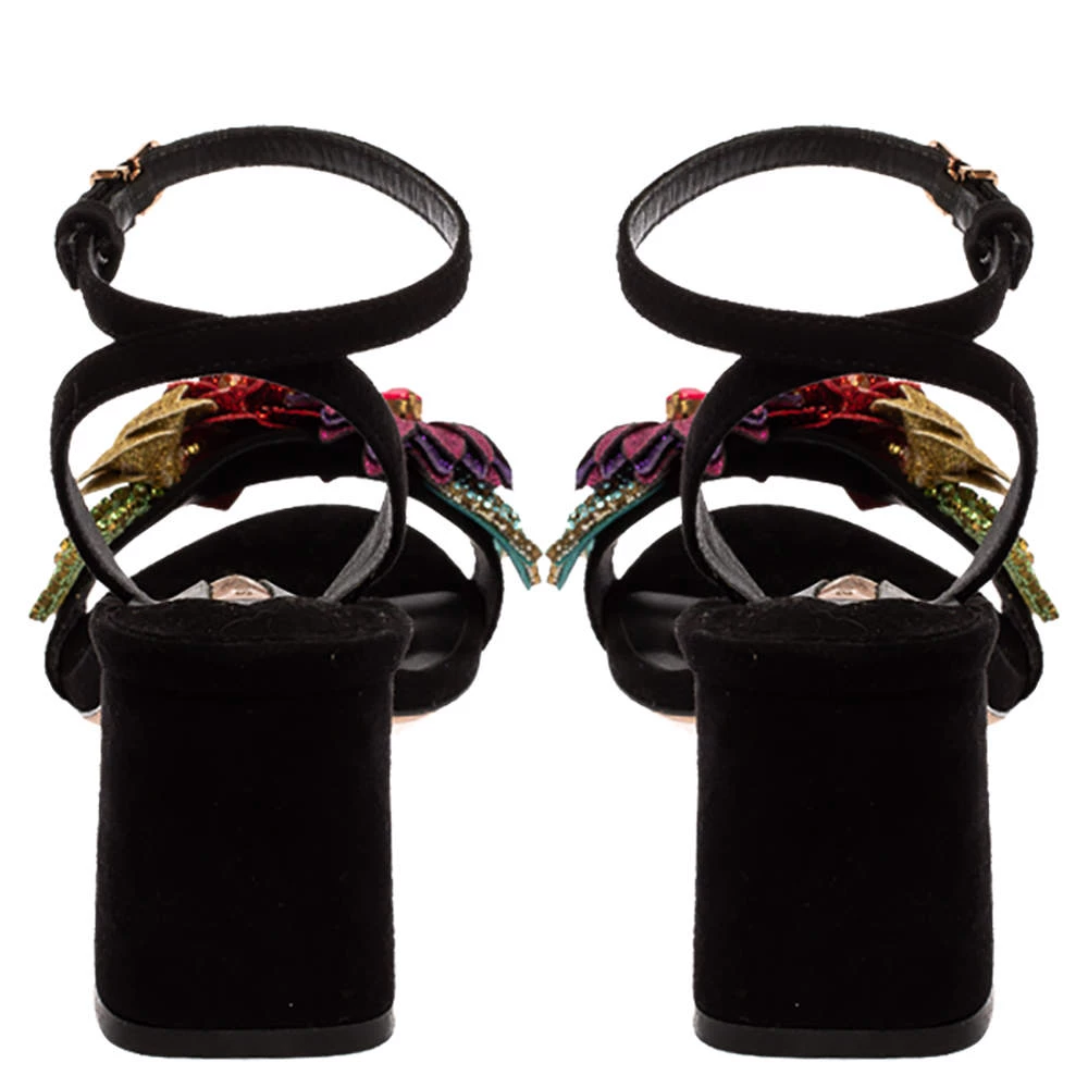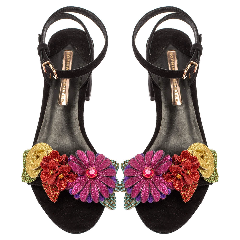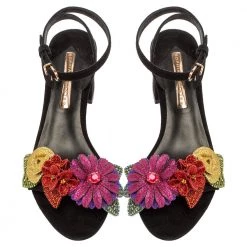 One of Sophia Webster’s well-known styles, the Lilico, has been iterated with a comfortable platform heel. This black open-toe pair is created with front straps in a black hue, decorated with multicolored glitter floral appliqués and crystal embellishments for a statement-making result. Wear them to lift the hem of a knee-skimming dress.