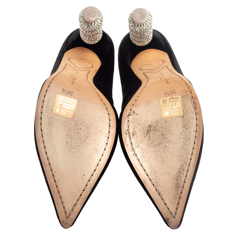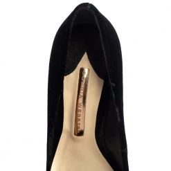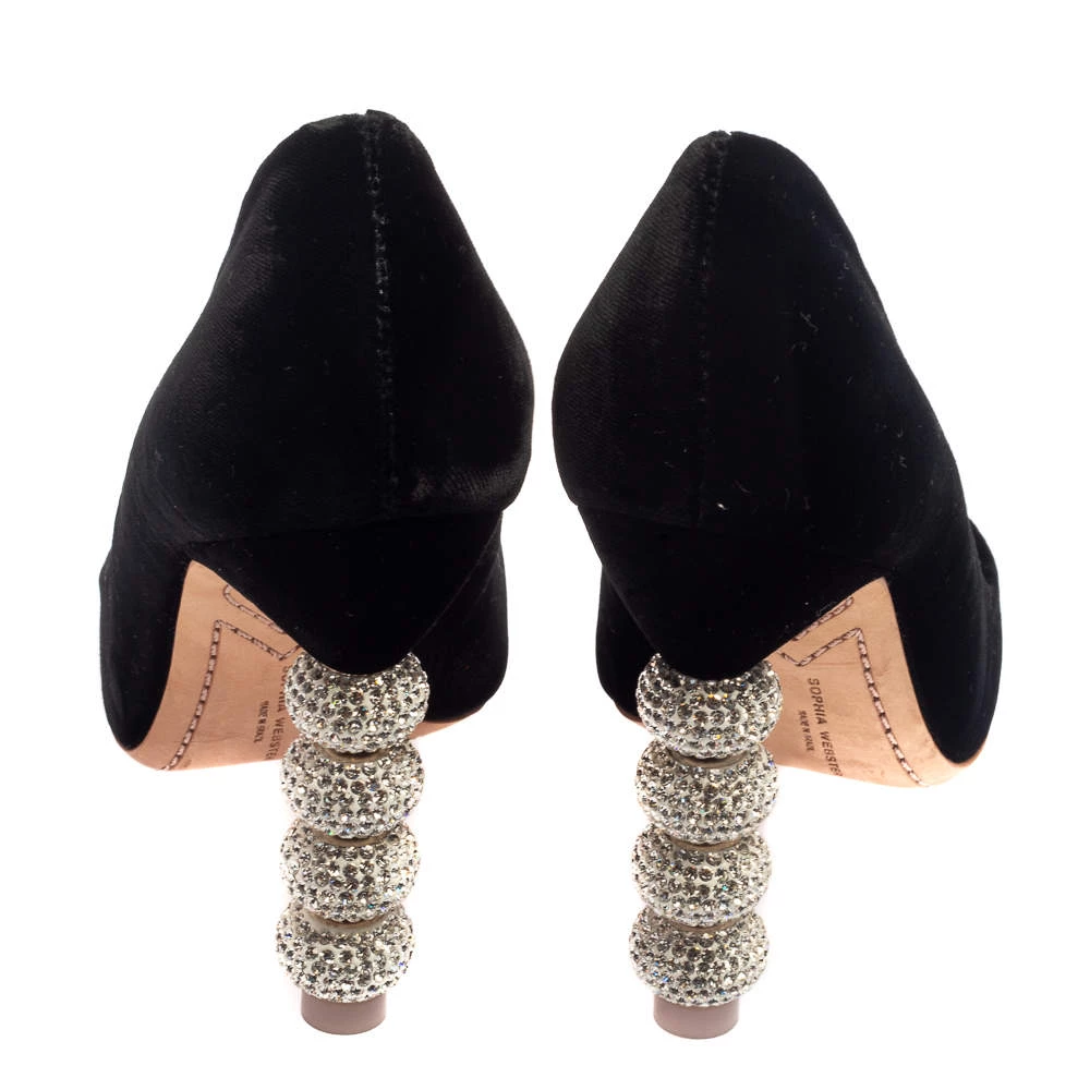 Truly a stunner! These Coco pumps by Sophia Webster impart a sleek and refined allure. They have been crafted using black velvet and shaped into a pointed-toe silhouette. What makes these pumps stand apart are the crystal-embellished heels that have a stacked look. You’re sure to get all the admiring glances in the part when you slip into them.