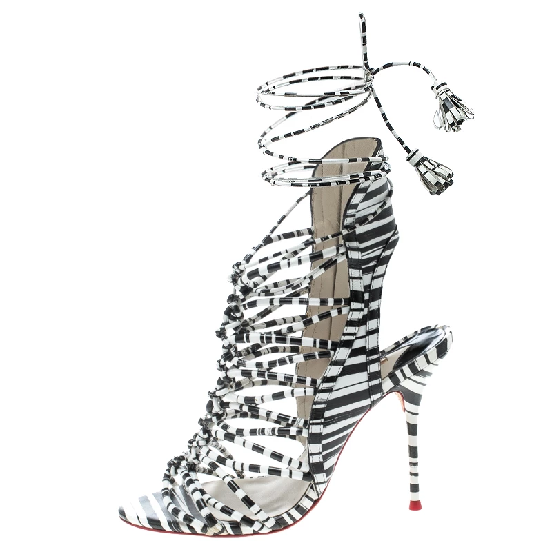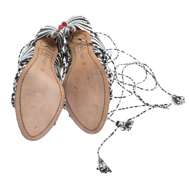 These sandals from Sophia Webster look right on style! The sandals are crafted from monochrome leather and designed in a strappy layout bound by side zippers and tie-ups around the ankles. Balanced on 11.5 cm heels, this lovely pair will have everyone in admiration.