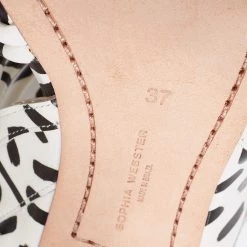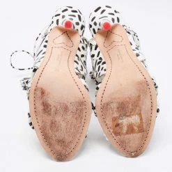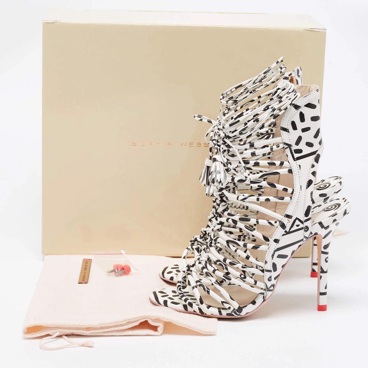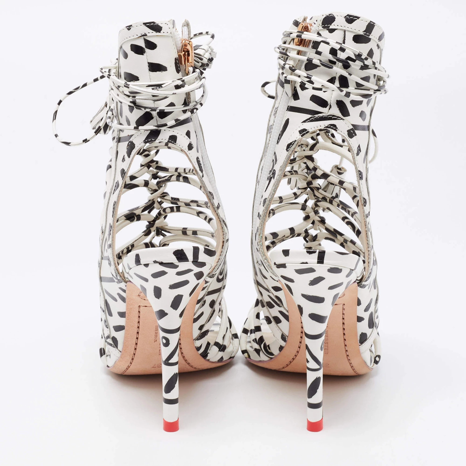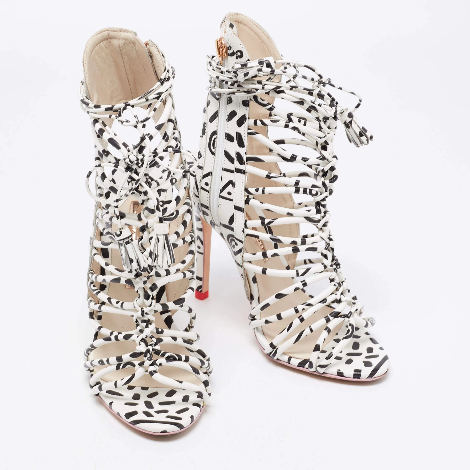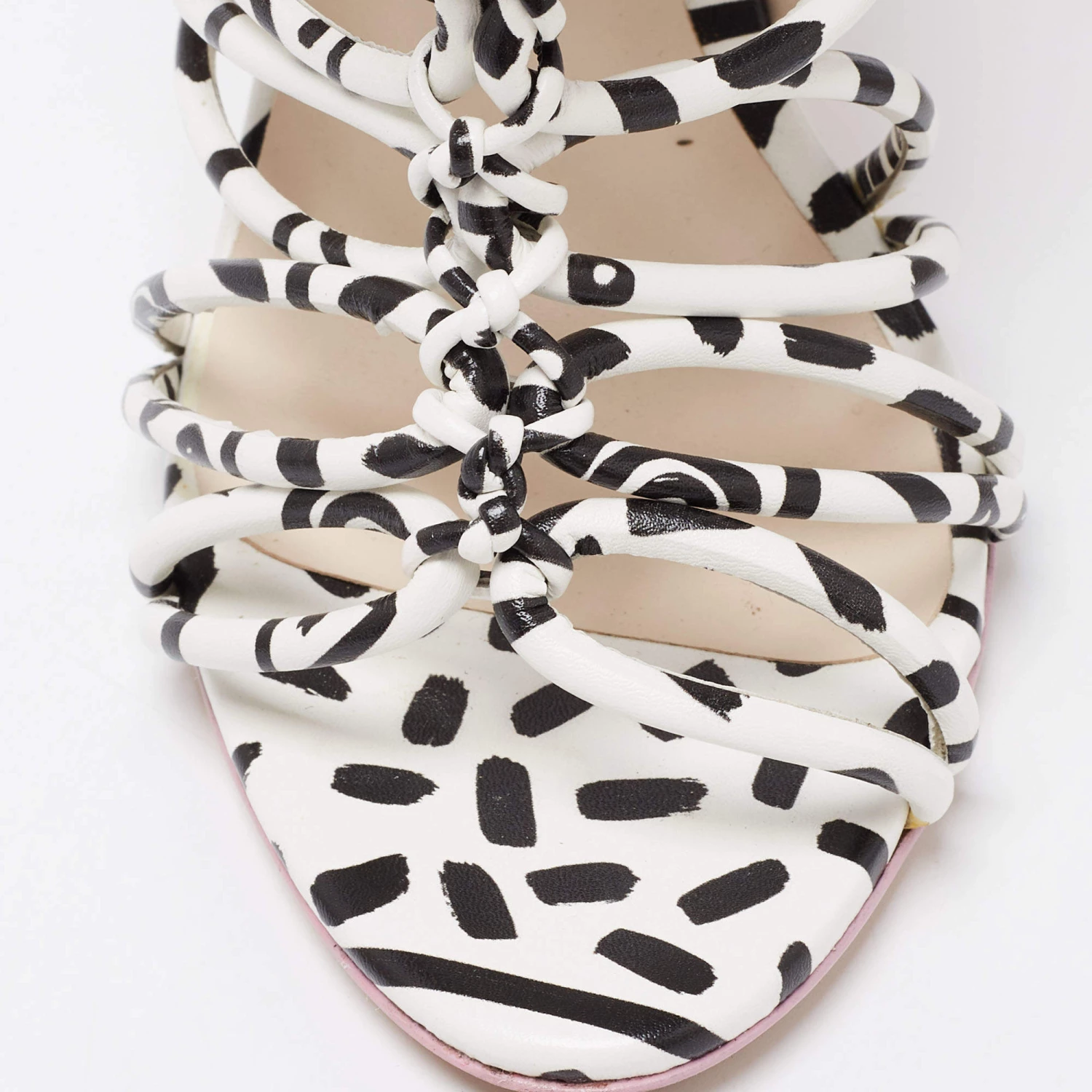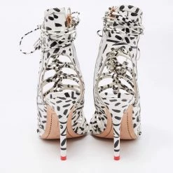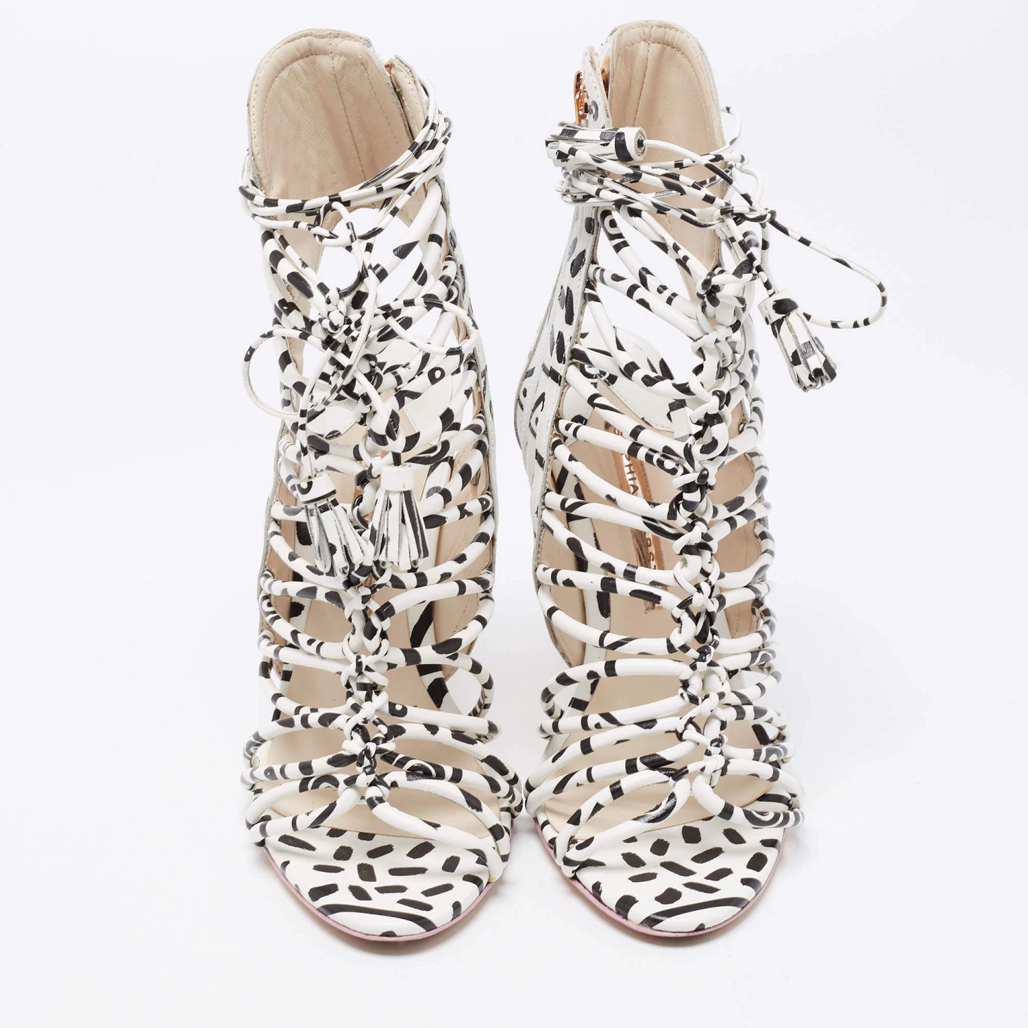 These sandals from Sophia Webster look absolutely breathtaking! The sandals are crafted from leather and designed with leopard prints in a strappy layout bound by side zippers and tie-ups around the ankles. Balanced on 10 cm heels, this lovely pair will have everyone in admiration.