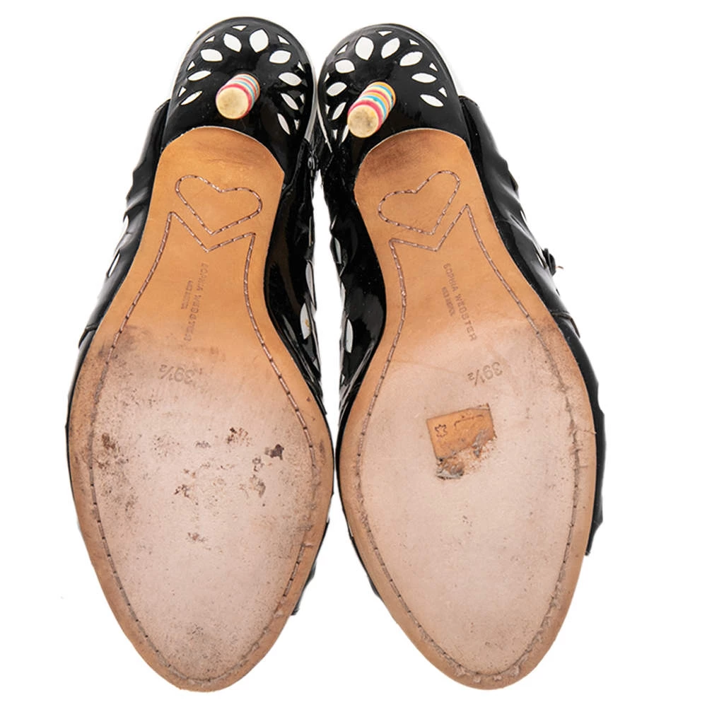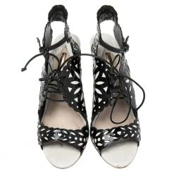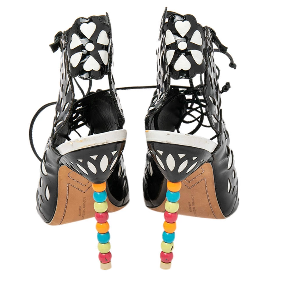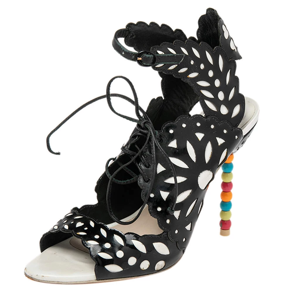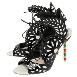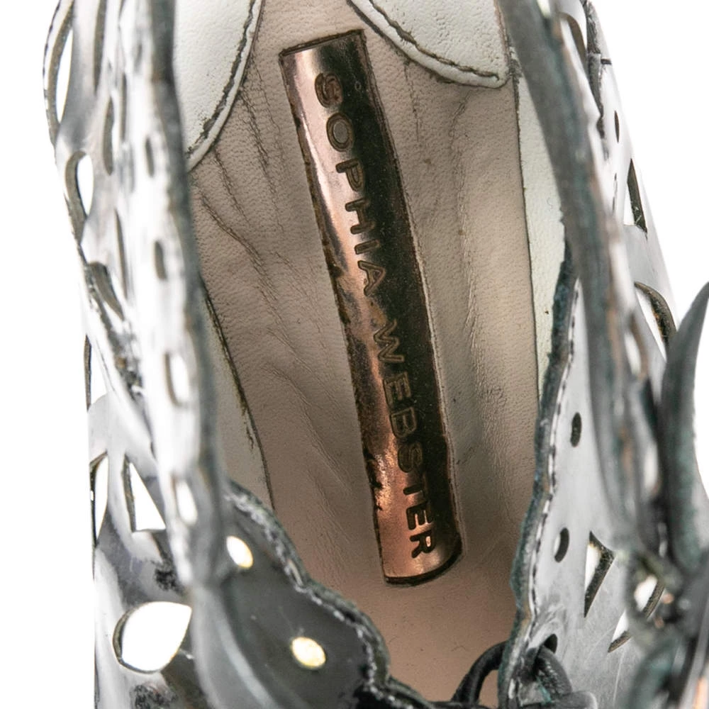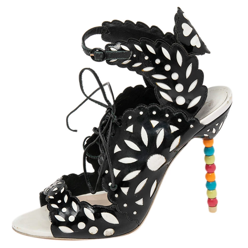 Sophia Webster yet again brings a stunning set of sandals that makes us marvel at its beauty and craftsmanship. Crafted from a combination of patent leather and leather, they are adorned with intricate cutout details. Pair these sandals with short hemlines to highlight the feminine flair.